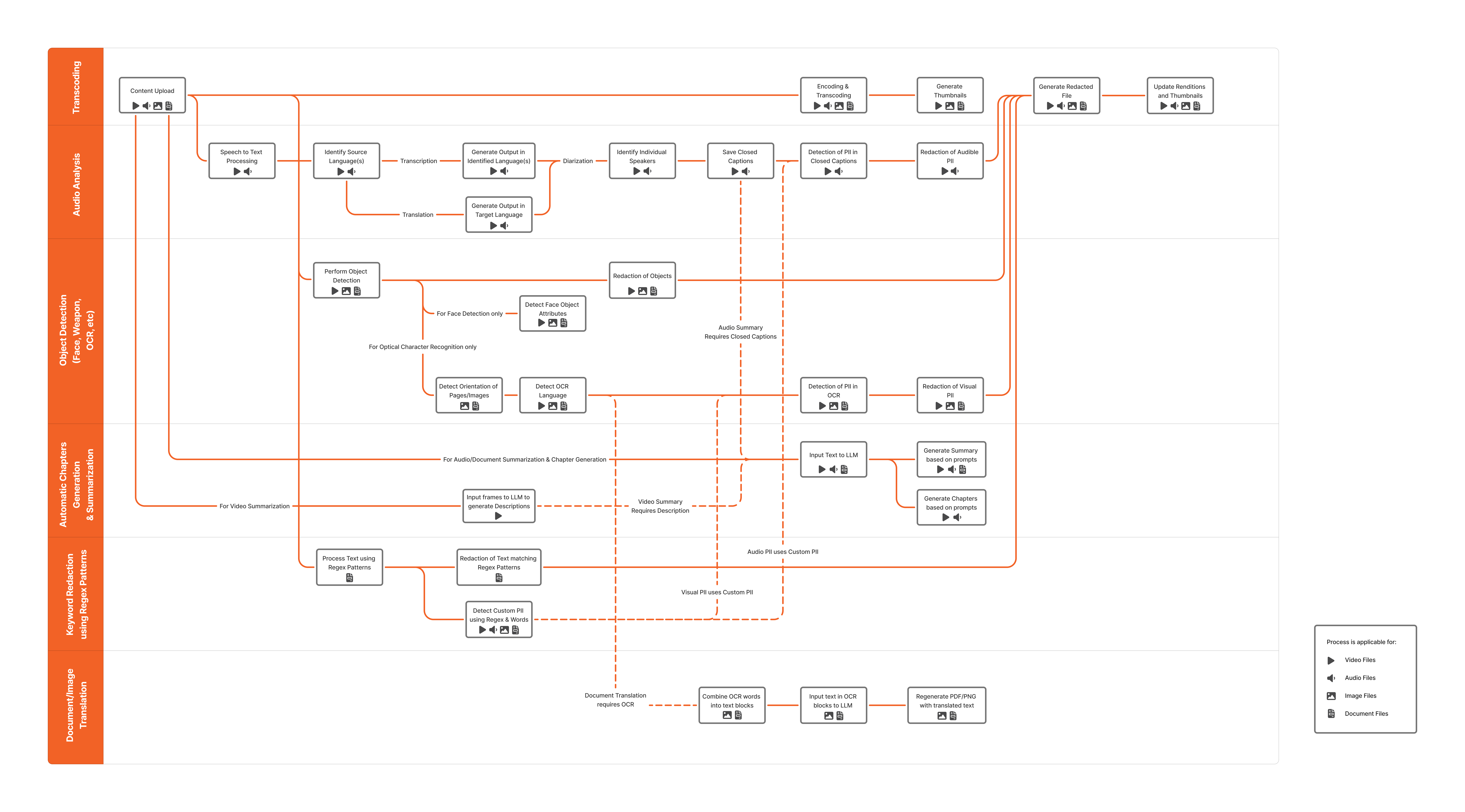 VIDIZMO AI content processing combines modular AI workflows, dependency aware orchestration, and reusable artifacts to deliver scalable and reliable multimedia intelligence. By separating visual, audio, language, and LLM-based workflows, VIDIZMO ensures efficient execution while enabling advanced capabilities such as redaction, summarization, translation, and compliance enforcement across content types.