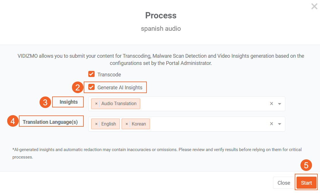 VIDIZMO lets you translate the spoken language in your audio and video files. When Audio Translation is enabled in the VIDIZMO Indexer's Insights, supported audio and video content is translated using standard processing modes: