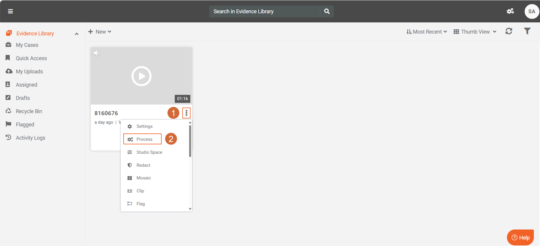 - Go to the desired media file that you want to process. Access the overflow menu located on the media file.