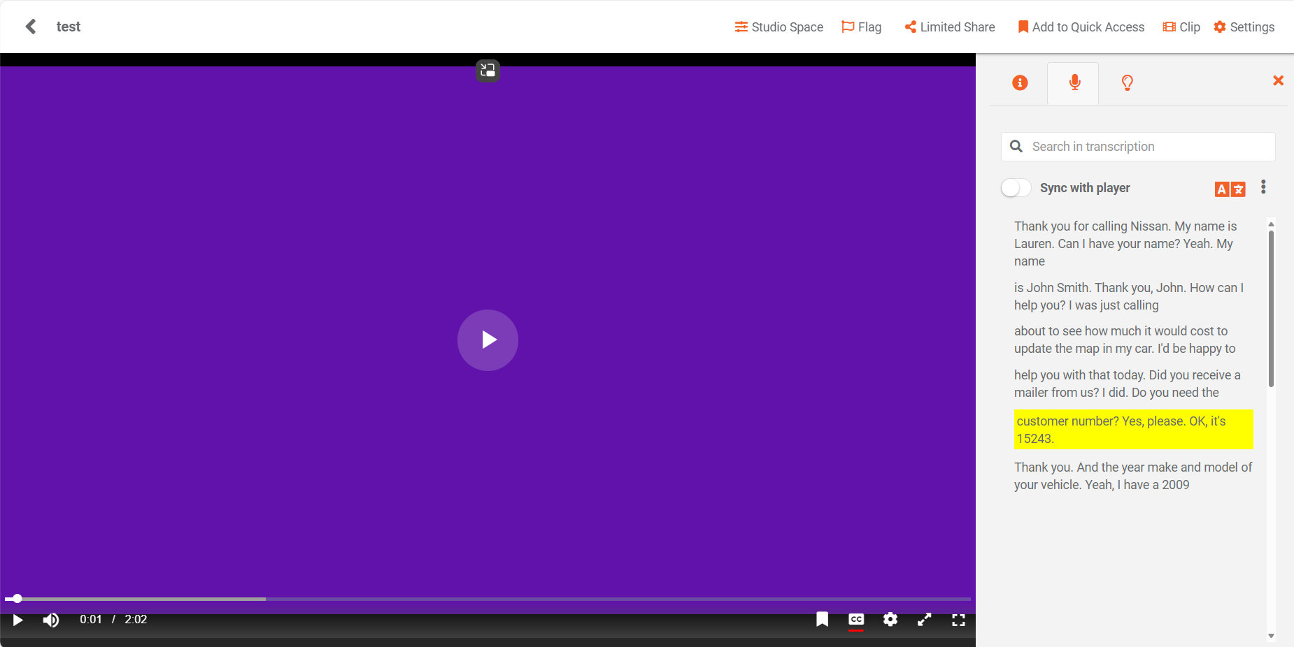On the playback page, you can view the transcription.