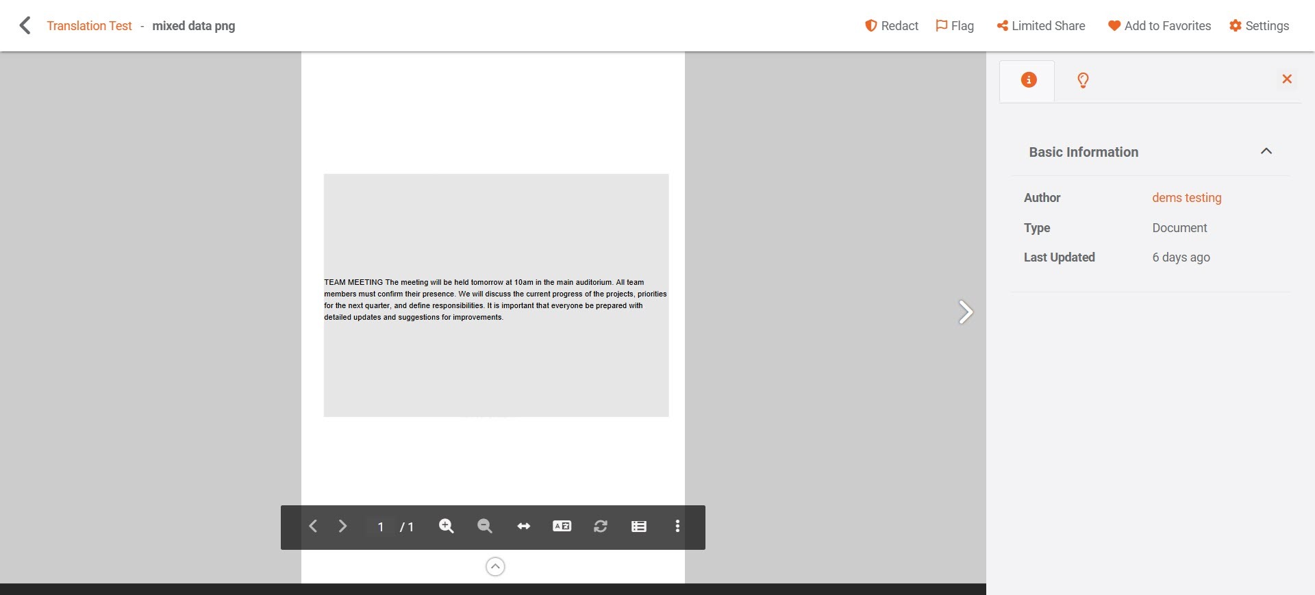 VIDIZMO lets you translate the text present in your documents or on the images. When Document Translation or Image Translation is enabled in the VIDIZMO Indexer's Insights, supported documents and images are automatically translated using standard processing modes: