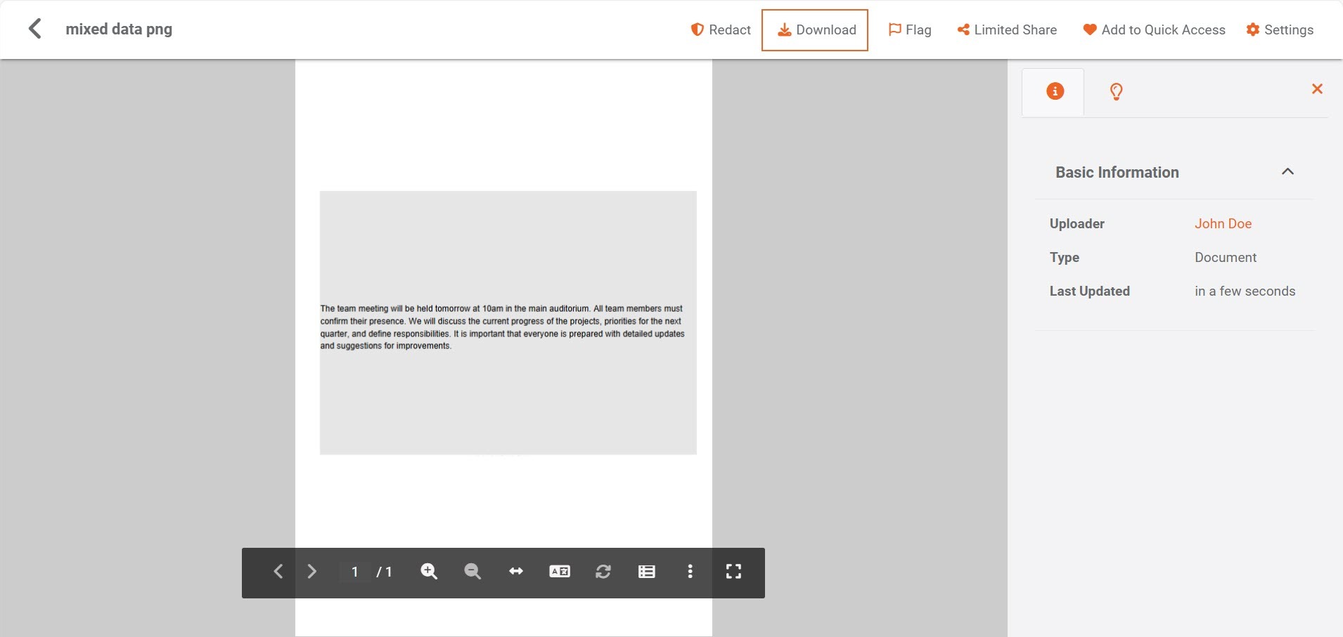 In the document or image viewer, select the Download icon.