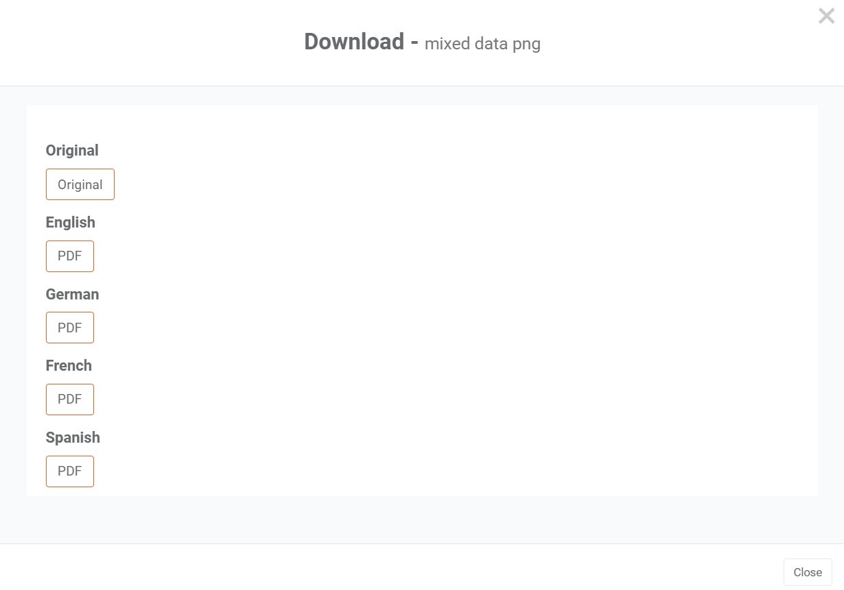 If downloading is enabled for the media file, you can download either the original or translated version directly from the document or image viewer.