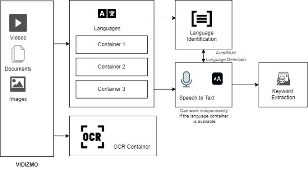 VIDIZMO can identify multiple languages in a single media file. All you need to do is to provide the language identification endpoint, i.e. language containers on your on-prem server.