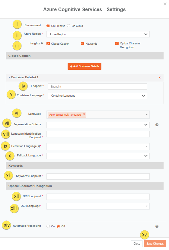 iv) Provide container endpoint. i.e. your on-prem server where the closed captions container is located (On-prem insights generation needs your container for closed captions)