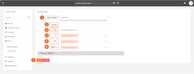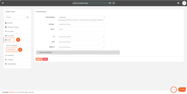 To set up SendGrid in the VIDIZMO portal for efficient delivery of email and notifications, fill in the following fields under Email Settings: