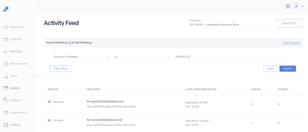 SendGrid provides dedicated IP addresses, allowing users to monitor which IP pool their emails are sent from directly within the SendGrid dashboard. Navigate to the Activity Feed and use the search bar to select Sending IP Address, then input your specific IP pool. This enables users to track email analytics associated with their designated IP addresses easily.