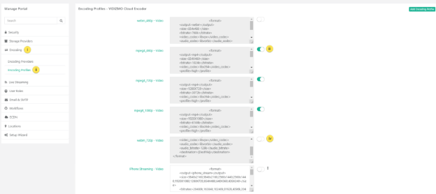 iii. Enable the toggle button on the right of an Encoding Profile to activate it for use.