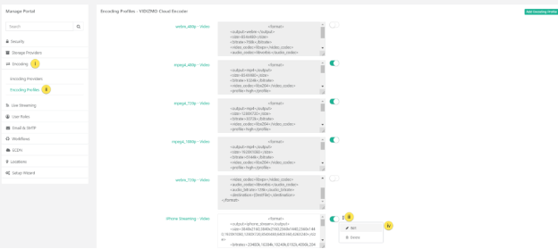 You can edit added Encoding Profiles. To learn more about how to add an Encoding Profile, see: How to Add an Encoding Profile.