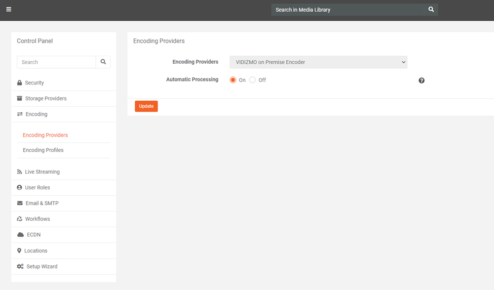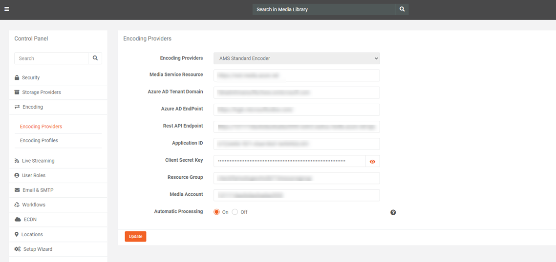 In Control Panel > Encoding > Encoding Providers, users can update settings of already-configured Encoding Provider in VIDIZMO.