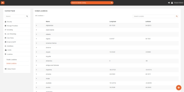 The default Global Locations in VIDIZMO can be viewed under Control Panel > Locations > Global Locations