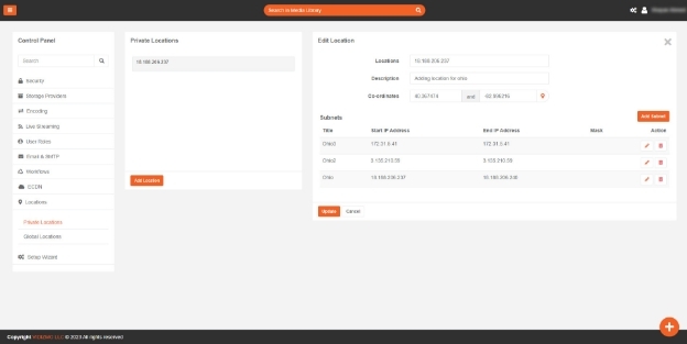 Private Locations can be configured by the customers to add custom Locations of their globally dispersed network of users to enable fast re-routing of live or on-demand streaming.