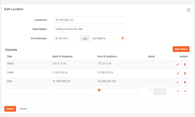 • End IP AddressMask: The last IP Address of the Subnet to define a range.