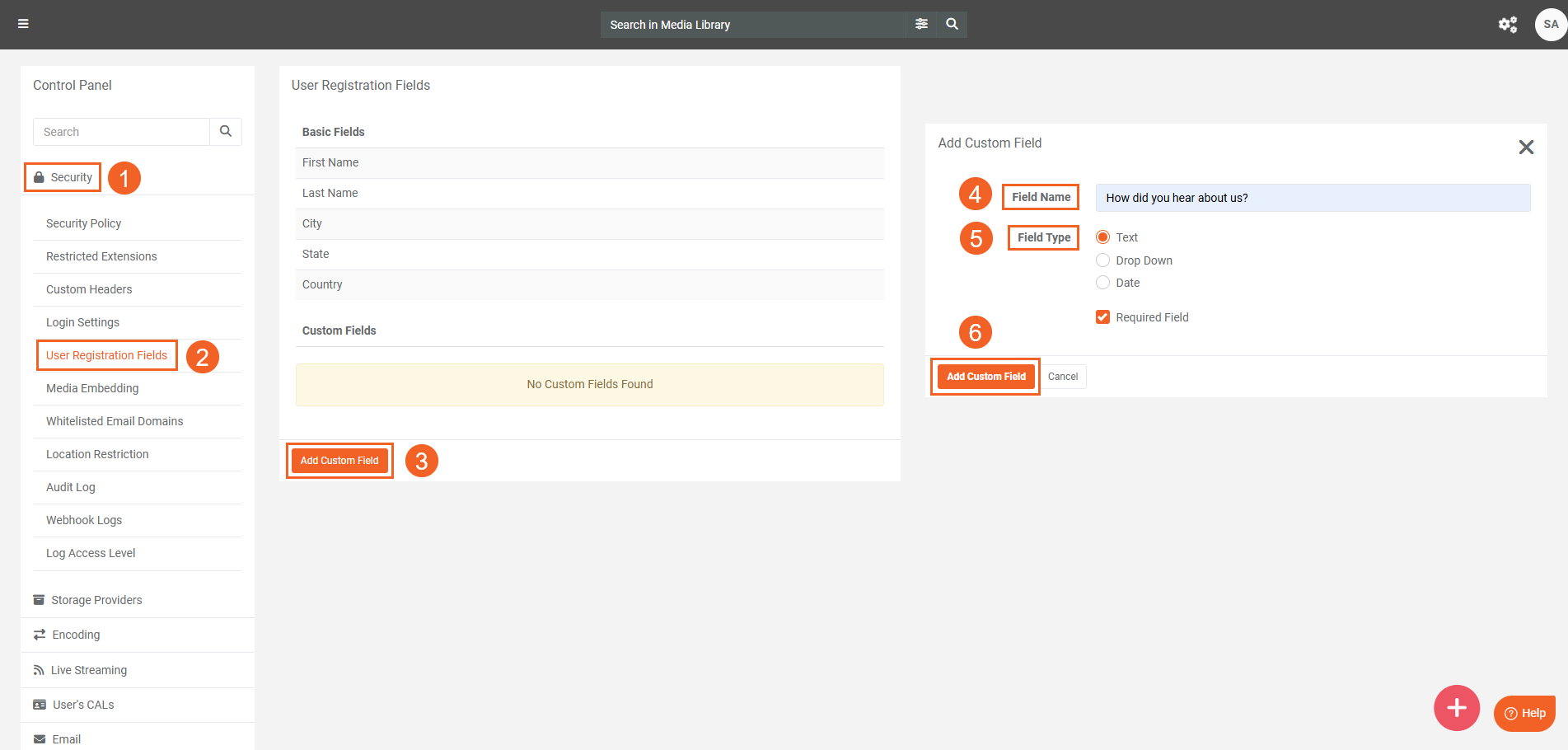 VIDIZMO provides the ability to add custom fields in the join Portal form if there is a need to register additional details from a user (e.g., Officer ID, Employee ID, etc.). Apart from the basic information you can add as many customized fields in the form as required.