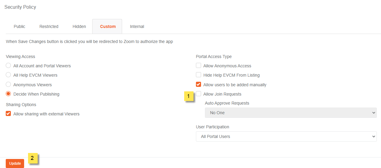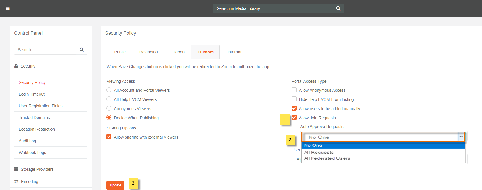 In VIDIZMO, users can control how a user's join request will be handled. This includes enabling/disabling automatic approvals or enabling/disabling the Join Portal option.