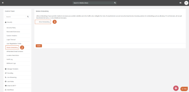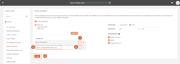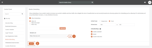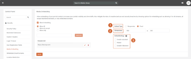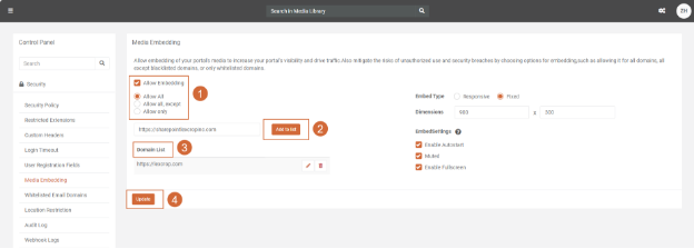3. Check the Allow Embedding option to permit media embedding within your portal.