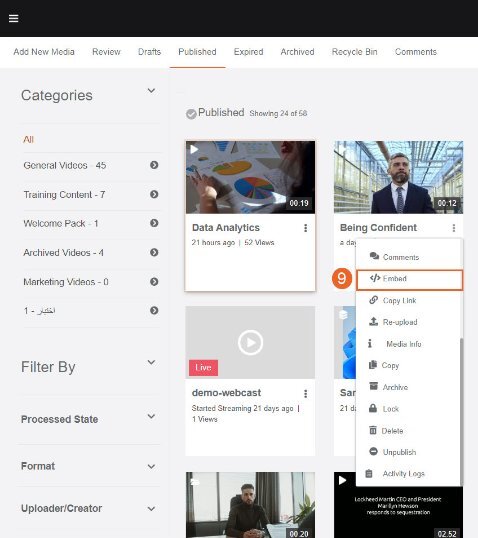 As discussed above, you can also generate and copy embedded code from the Media Playback Page as well. The steps are as follows: