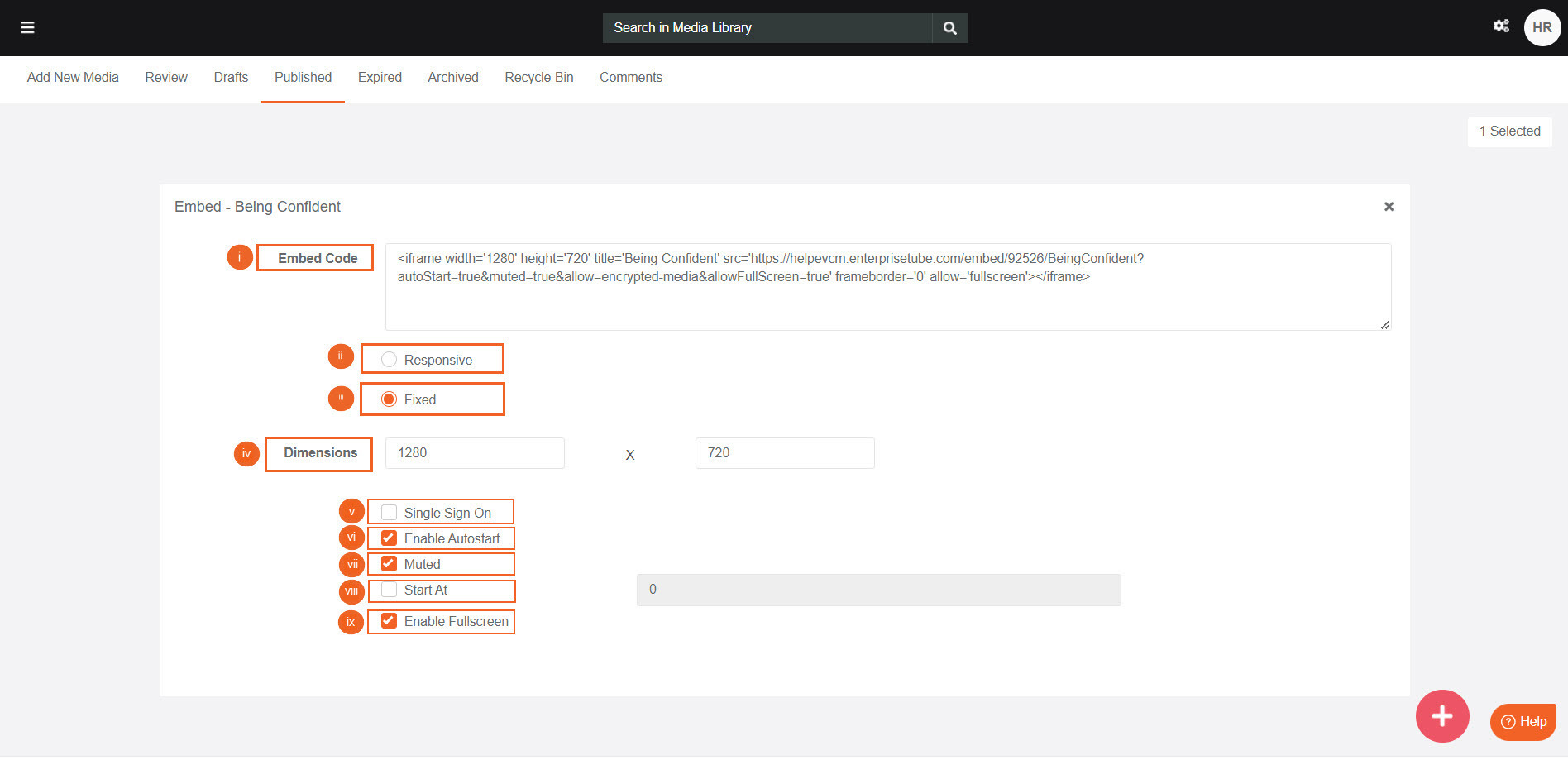 - Enable Fullscreen: Allows the embedded media to open in fullscreen mode by default.