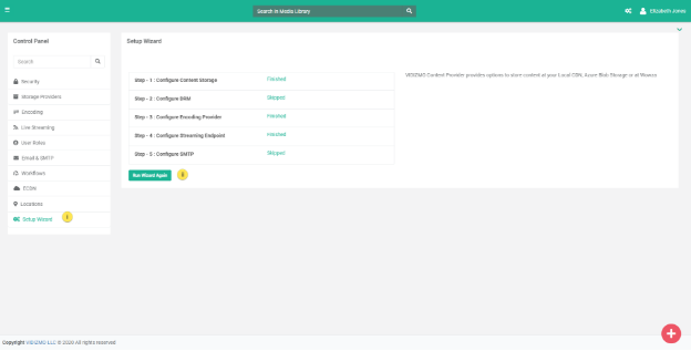 Note: You can track the progress of the Setup Wizard with respect to Storage Provider and Transcoder configuration via Workflows. To learn more about it, see: How to View Workflows.