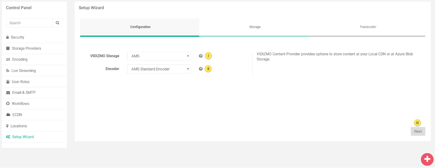 Setup Wizard allows you to initially set up your Portal's Storage Provider and Transcoder for a seamless user experience throughout the application usage. It takes you through a series of easily configurable steps to help set up the system.