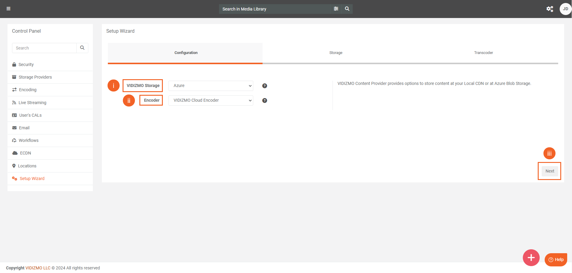 Note: You can track the progress of the Setup Wizard with respect to Storage and Transcoder configuration via Workflows. To learn more about it, see: How to View Workflows