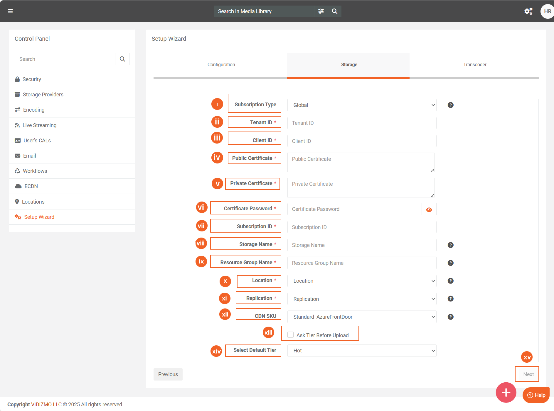 Note: VIDIZMO provides a set of default configuration for your Storage and Transcoding Provider which can be overridden via Setup Wizard due to evolving business requirements. Furthermore, apart from the possible configurations, VIDIZMO also offers the flexibility of choosing any other Storage Providers or Transcoders that the organization may want to configure their application with.