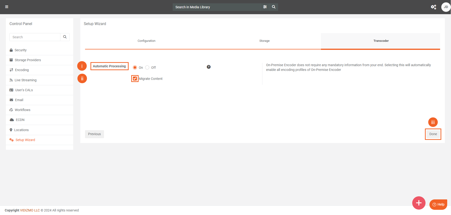 Note: You can track the progress of the Setup Wizard with respect to Storage and Transcoder configuration via Workflows. To learn more about it, see: How to View Workflows.
