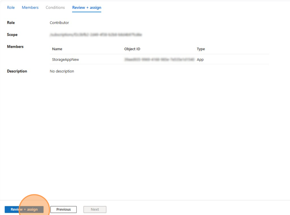 Follow these steps to grant necessary permissions to your storage application within the selected subscription.