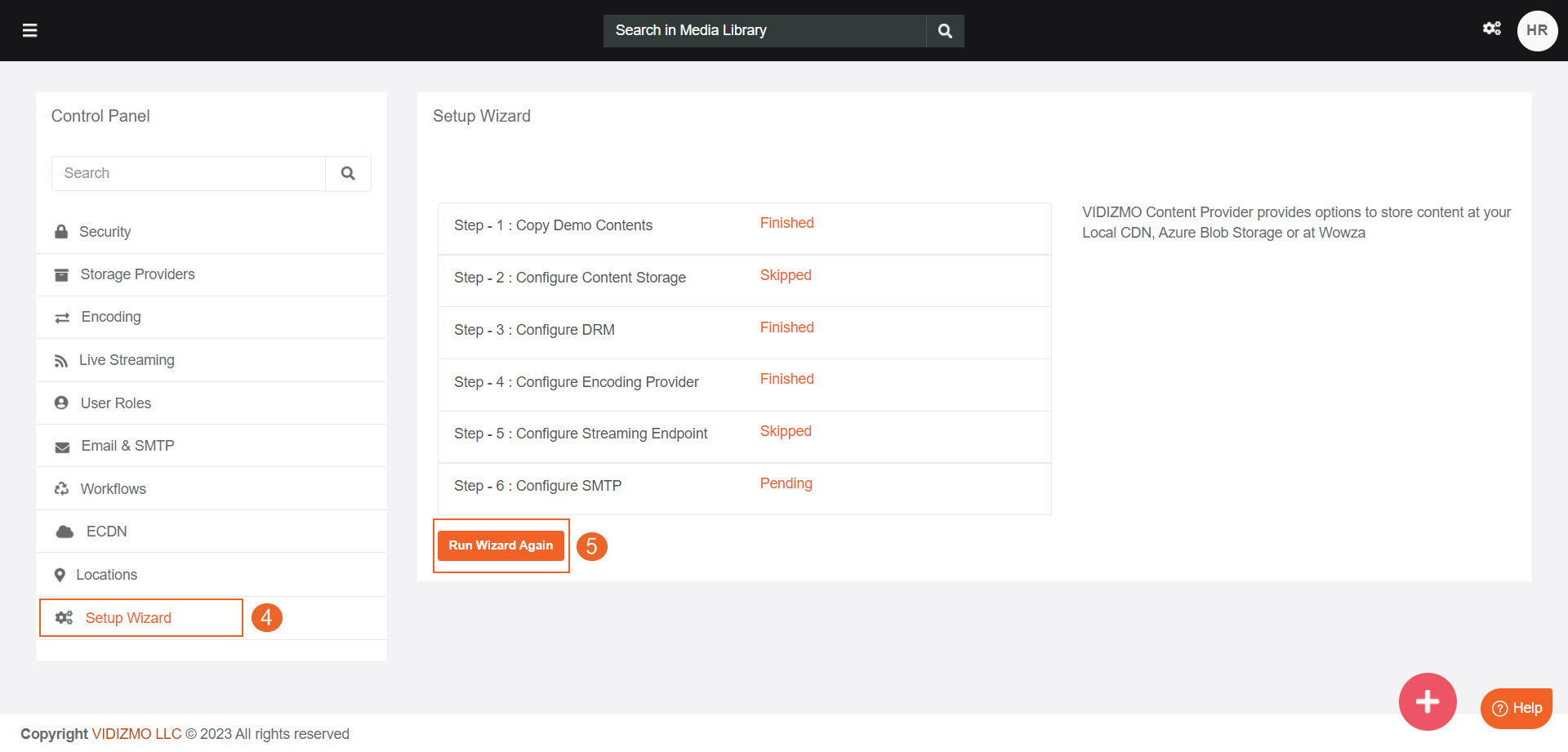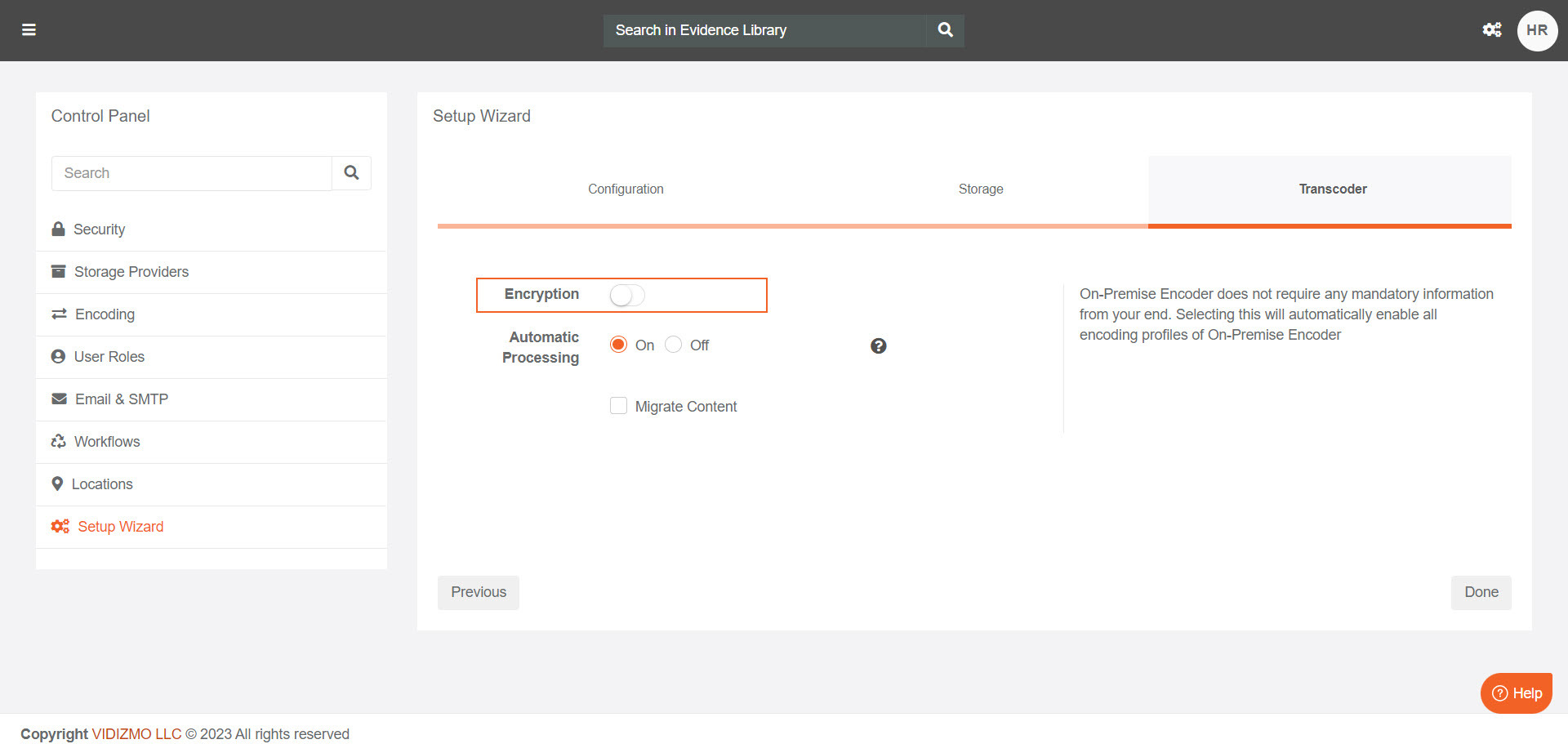 Users in the group where Storage Provider permission is enabled can configure VIDIZMO Storage with VIDIZMO On Premise Encoder using Setup Wizard in a Portal.