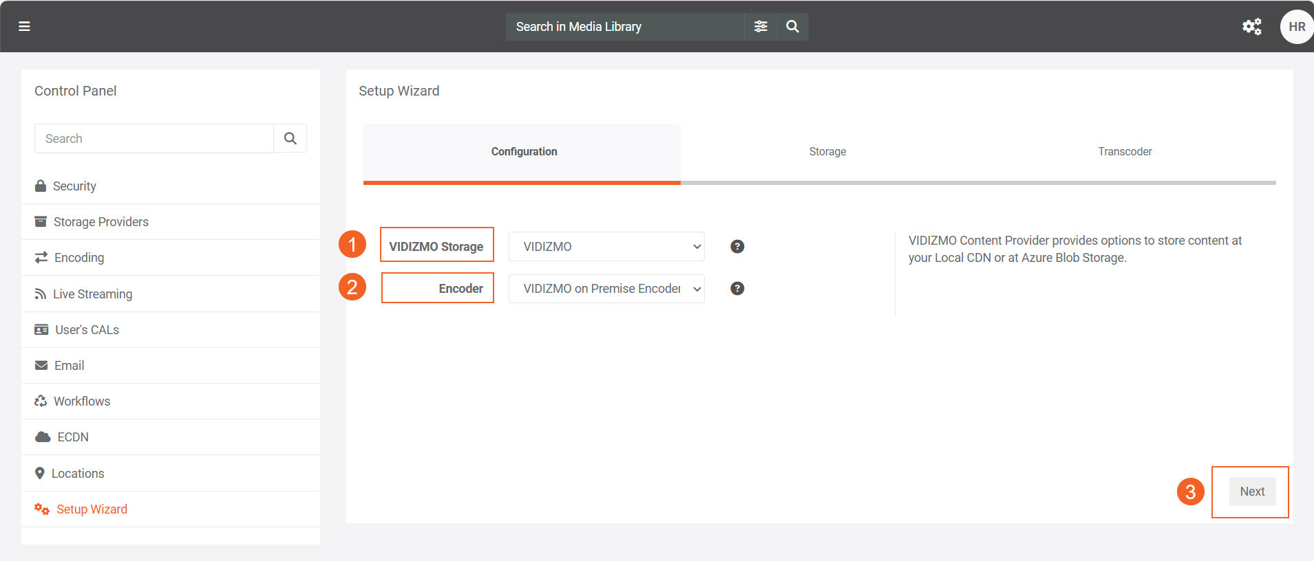 By default, VIDIZMO offers five different storage configurations and two Transcoding Providers through the Setup Wizard.