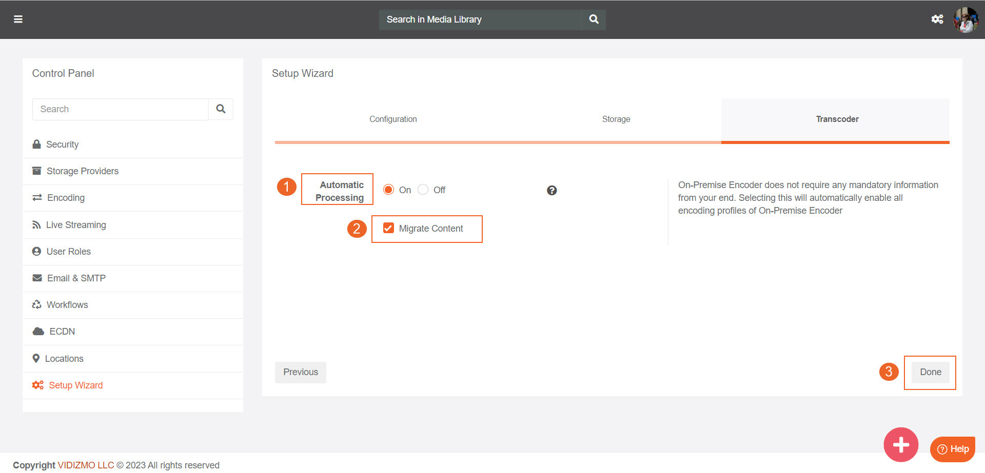 For customers seeking an On-Premise solution, VIDIZMO provides the flexibility to configure their local storage servers with VIDIZMO. This empowers organizations to maintain full control over their content storage locally. When configuring VIDIZMO storage as your provider and combining it with transcoding services using VIDIZMO On-Premise Encoder, VIDIZMO simplifies the setup process by automating it through the VIDIZMO Setup Wizard. The Setup Wizard guides you through a series of easy, configurable steps to establish your Portal's Storage Provider and Transcoder.