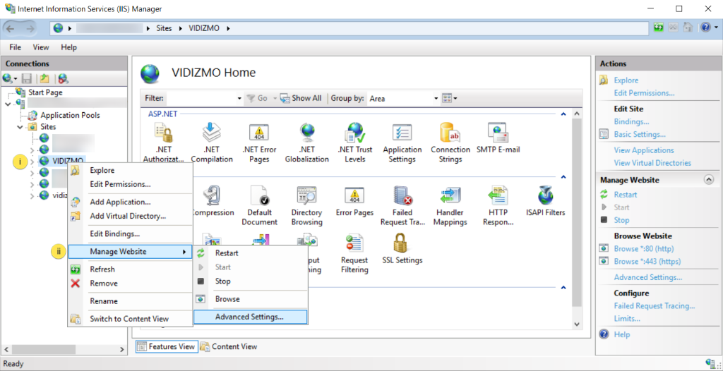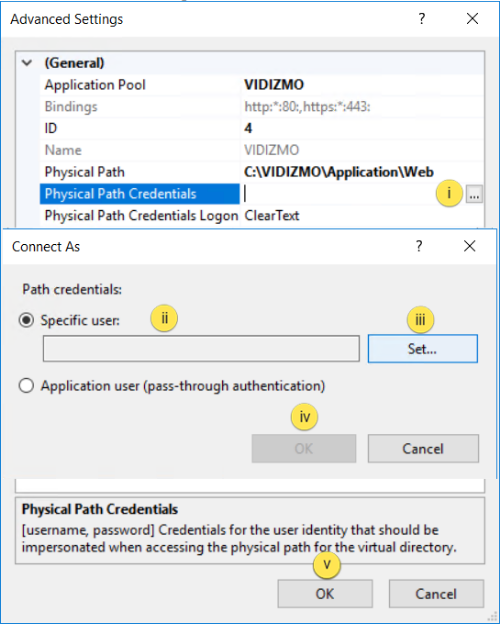 Now in order to make sure VIDIZMO Application has the access rights and permissions to read as well as write files on the shared folder for successful content upload, storage and retrieval, we will have to configure authentication for the shared path in VIDIZMO application site as well as its VIDIZMO Application pool.