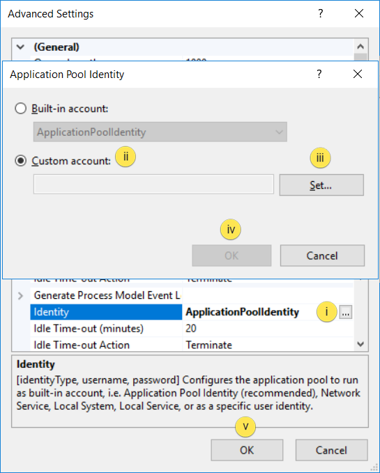 ii. By default, an Application pool by your site's name will be created and your site will be associated with it.