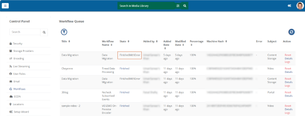 You can check the workflow status to verify successful content migration. Specific events trigger VIDIZMO's workflows, which consist of a series of activities executed in a predefined sequence. For more information, refer to our article "Understanding Workflows."