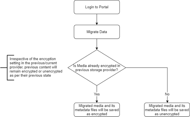 When you copy media from one portal to another, irrespective of the current encryption state of the media - the encryption setting in the destination portal determines whether the copied media will be saved as encrypted or unencrypted. The destination portal refers to the portal to which the media is being copied.