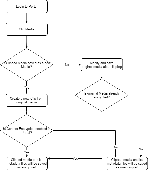 - When you clip original media and save it as-is, the encryption state of the media is preserved. It remains encrypted or unencrypted irrespective of the current encryption setting in the portal.