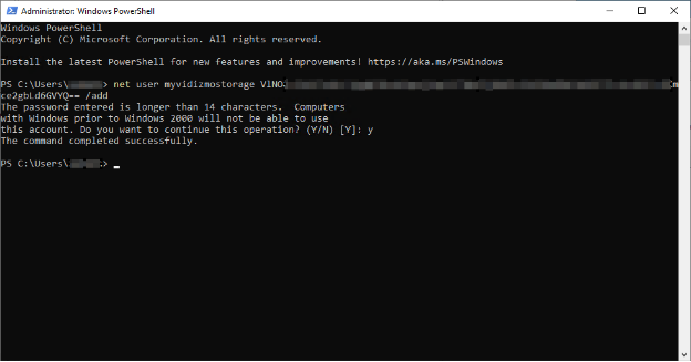 Note: Make sure your Azure storage account name has max 20 characters. By default, the local Windows user account can contain up to 20 uppercase or lowercase characters in username, except for the following: / \\ [ ] : ; | = , + \\* ? < >