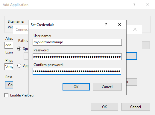 2. Create a new user account with name matching your Azure storage account and password matching your storage account access key: