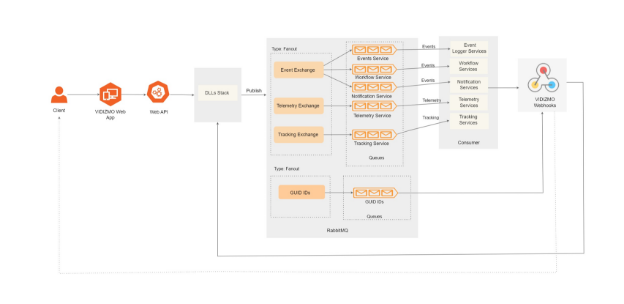 The VIDIZMO platform utilizes an event-driven architecture for efficient communication between various components. VIDIZMO offers users various broker service options, among which Rabbit MQ is leveraged as one of the choices. RabbitMQ is a well-known open-source message broker that plays a crucial role in the VIDIZMO architecture. It is used as a broker service to facilitate the reliable exchange of messages between microservices.
