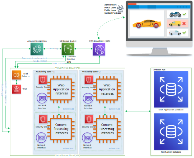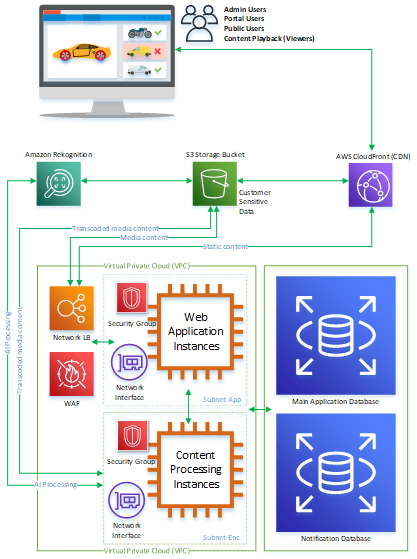 - EC2 instances (Web app and content processing)