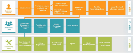 The identification and notification of bugs or software changes can either be performed by internal VIDIZMO teams including QA, development, and technical support during normal operations, or the customers and their end users during regular use of the VIDIZMO software. In such a case end users typically reach out to VIDIZMO support teams. Each reported issue is given an extensive drill down by VIDIZMO teams to determine whether its resolution requires a patch or an update. A representation of VIDIZMO's tiered support model is given below for reference.