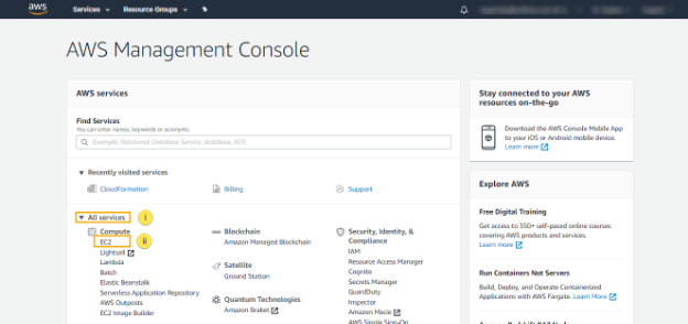 ii. From AWS Management Console, expand All Services Section.