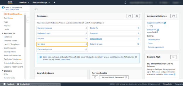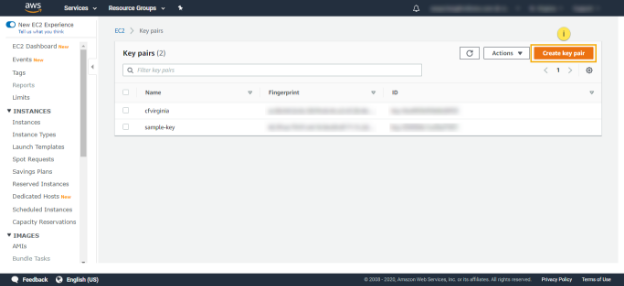 2. From Resources, select Key Pairs. It will take you to the Key Pair Creation screen.