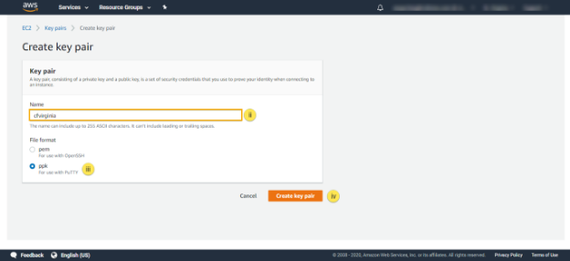iv. Click on Create key pair, to finish the key pair creation process