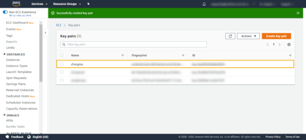 v. The successful key pair creation will take you to the key pair's screen where you will be able to see all existing and newly created key pair.