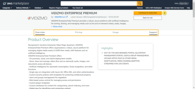 How to purchase VIDIZMO App on AWS Marketplace