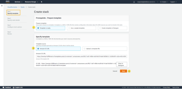 ii. In the Specify Template, select the Amazon S3 URL. On this link, the AWS resource files have made available for Cloud Formation.