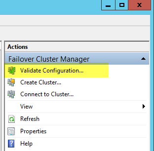 2. Within Failover Cluster Manager, click the Validate Configuration link in the right pane under "Actions".
