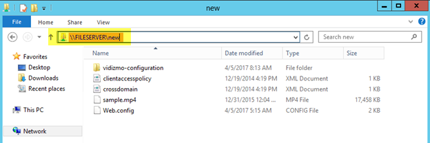 It is recommended to use the same Network Location from where the Content would be served. For this purpose create a “Network Share Location” that will be used as CDN and Upload Path for Vidizmo Application. In this case, the Share Path is \\FILESERVER\\new.