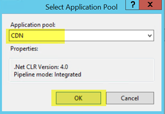 10. Next, select “Application Pool” and select “CDN” from the list and click on the "OK" button